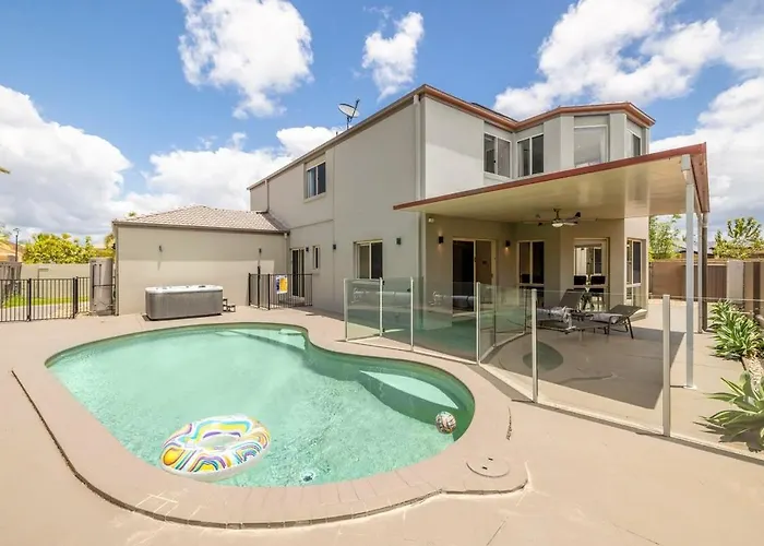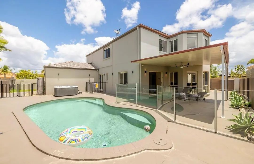 Featuring a private swimming pool for guests' relaxation, the 4-bedroom Pool Sauna Cinema Office Room 4Br Spacious House Gold Coast villa is located approximately 10 minutes' drive from the Cavill Mall.